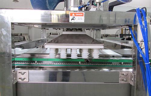 本機適用于生產蛋黃派、注芯蛋糕。將已經烤好的蛋糕連同模盤放在輸送帶上,機器將自動定量充填奶油等餡料。注芯完后成后,蛋糕再進入脫模區。脫模機一次性進行整盤脫模。自動清洗系統無需拆卸,操作方便,節省時間。