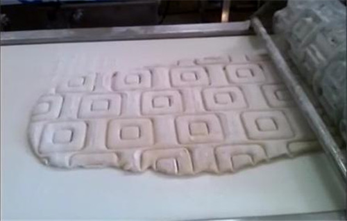 本機專為自動成型發酵型甜甜圈設計的。把面團放到料斗里,機器自動揉壓面團,撒面粉并滾切甜甜圈。滾切模具可更換,可根據客戶要求定制模具形狀。采用腳動開關設計,讓使用者可以空出雙手做其他操作。
