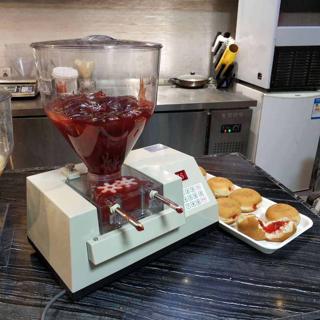 該甜甜圈注芯機LED屏會顯示你所需注入量,數字按鍵可輕松輸入設定值。當完成注餡后可設置回收餡料。料斗使用FDA認證的食品級材質。