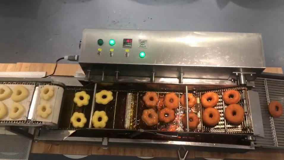 MD100+不僅僅是一個甜甜圈機,它還可以連接輸送帶作為發酵型甜甜圈的油炸機。操作人員無需站在油炸爐旁放進、翻轉、撈出甜甜圈這一系列浪費時間、人力資源且危險的動作。如果油炸時間為90秒,它可以炸出400個甜甜圈。已通過歐盟CE認證。單相電壓適合門店使用。