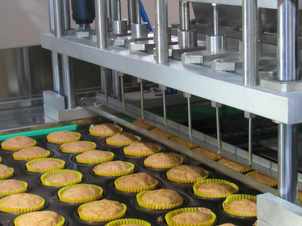 煜豐DPL-6C一次成型6個甜甜圈,一小時可生產2400個。使用西門子觸摸屏和PLC程序更加易操作。成型時間與油炸時間均可控制。該蛋糕型甜甜圈產線適用于工業,整機功率大約28千瓦。