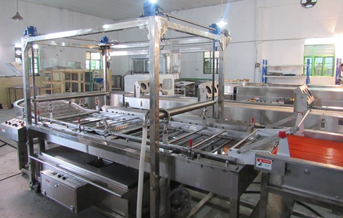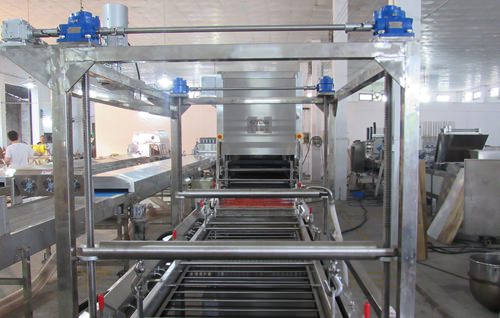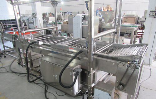 該設備是采用通電加熱油,通過傳送機構自動翻轉甜甜圈,油炸甜甜圈兩面金黃至熟透。
