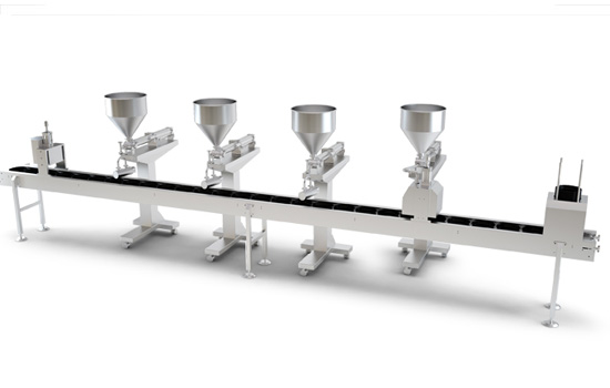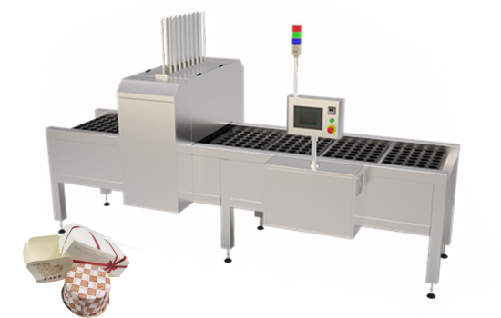 本機(jī)適用于生產(chǎn)蛋黃派、注芯蛋糕。將已經(jīng)烤好的蛋糕連同模盤放在輸送帶上,機(jī)器將自動(dòng)定量充填奶油等餡料。注芯完后成后,蛋糕再進(jìn)入脫模區(qū)。脫模機(jī)一次性進(jìn)行整盤脫模。自動(dòng)清洗系統(tǒng)無需拆卸,操作方便,節(jié)省時(shí)間。