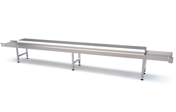 冷卻殺菌是包裝前的*后一個程序。產品出烤爐后經過冷卻線進行快速而高效的冷卻,在有效降低產品溫度的同時不會造成變形或裂紋。接著產品被送往紫外線殺菌線進行殺菌,以提高食品質量和保質期。輸送帶長度可根據生產能力定制。